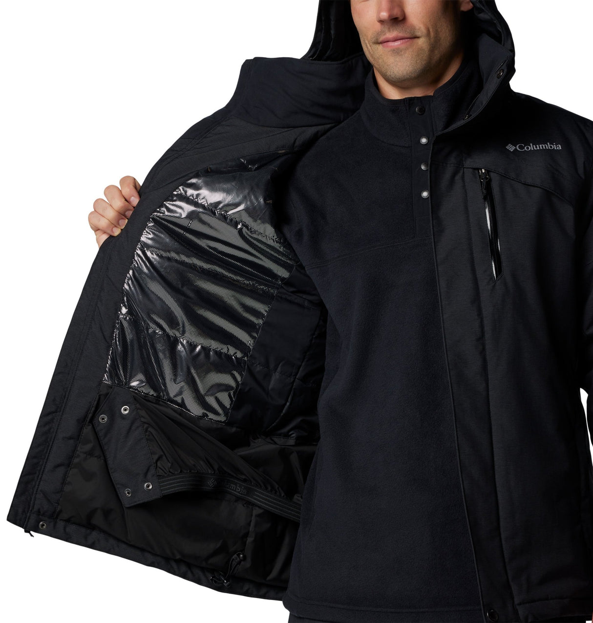 This versatile ski jacket is your go-to for all-day performance on the mountain. The Columbia Men's Last Tracks II Winter Jacket is a waterproof-breathable, thermal-reflective hooded ski jacket built for performance and protection with a range of mountain-ready features. Omni-Tech™ critically seam sealing prevents moisture from seeping into essential areas, so you stay dry and comfortable in wet conditions. The Omni-Heat™ thermal-reflective lining retains warmth, while an adjustable, snap-back powder skirt blocks wind and snow. With a removable, adjustable hood, zippered chest and hand pockets, and a ski pass pocket, this jacket is designed for all-day comfort and convenience.