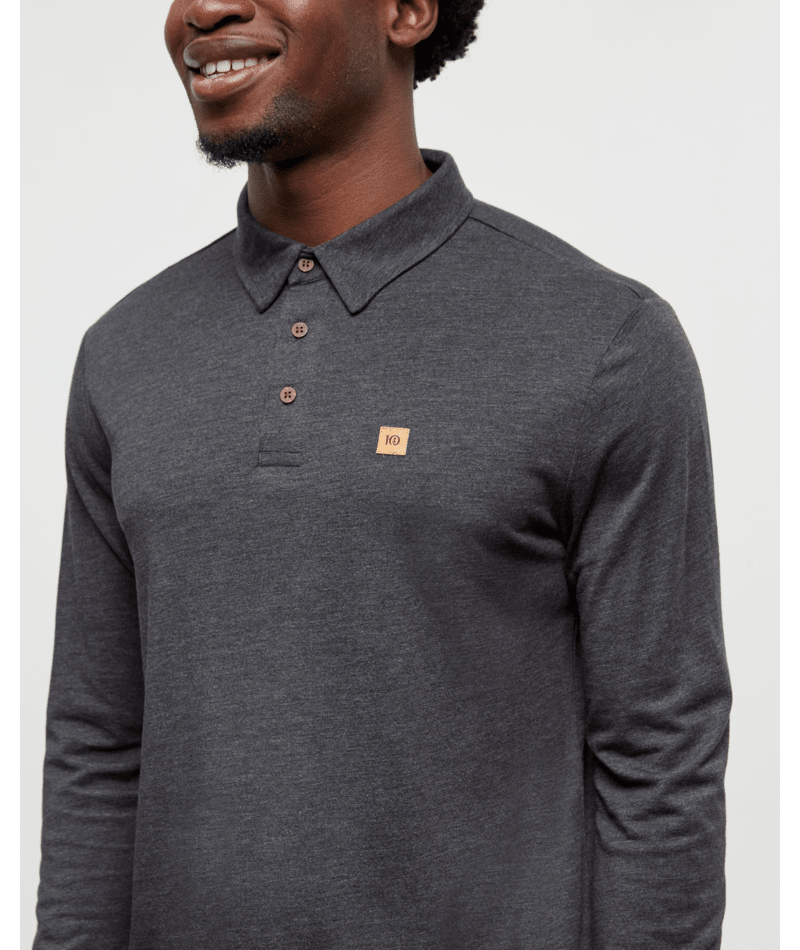 tentree Men's Astir Long Sleeve Polo - Meteorite Heather / M is backordered and will ship as soon as it is back in stock.