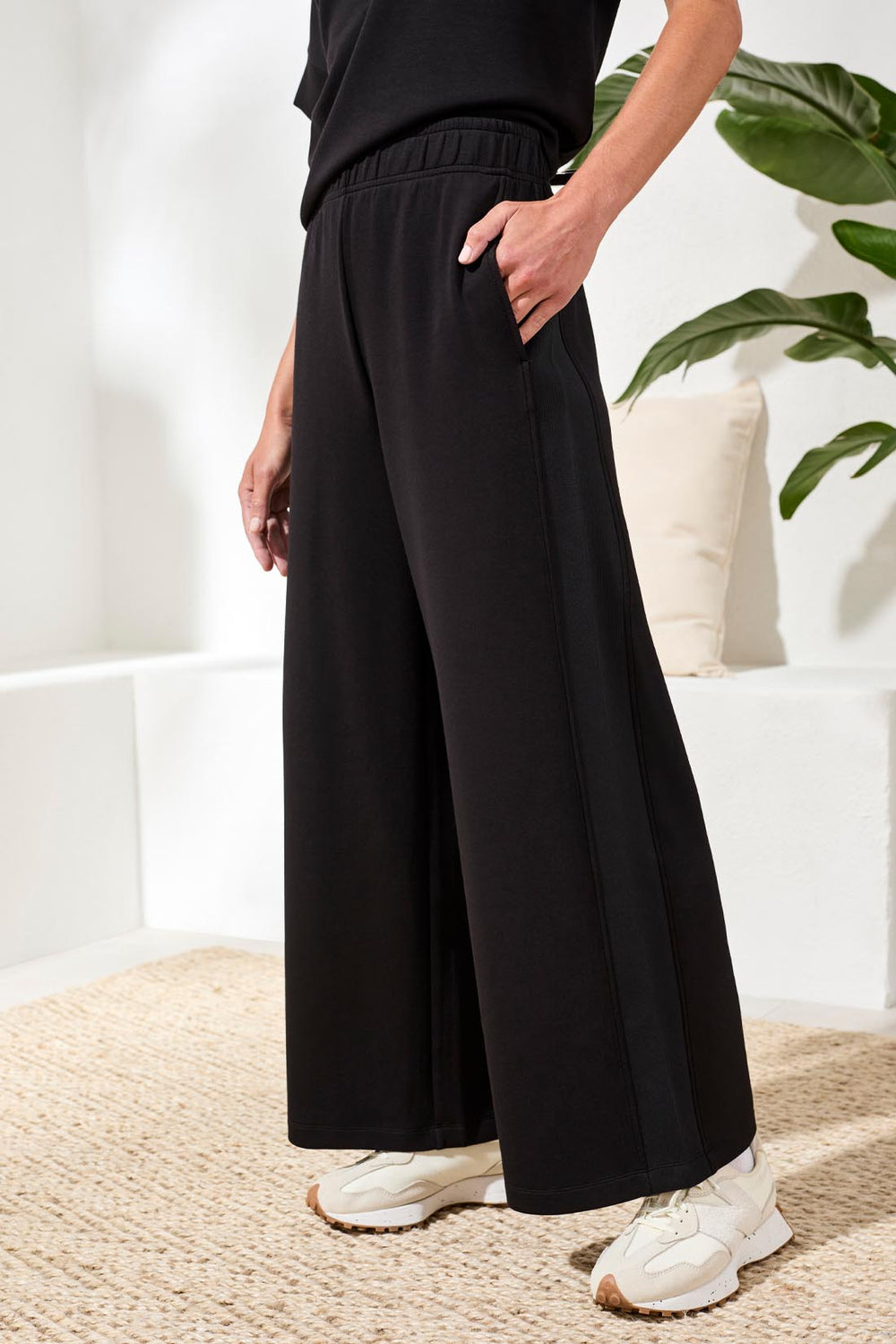 Designed for an effortless fit, these pants feature a wide elastic pull-on waistband that sits comfortably at the natural waist. The tapered leg silhouette and clean hem create a streamlined aesthetic that transitions perfectly from a casual work environment to weekend errands. With functional side-seam pockets, these pants combine utility with a minimalist design.