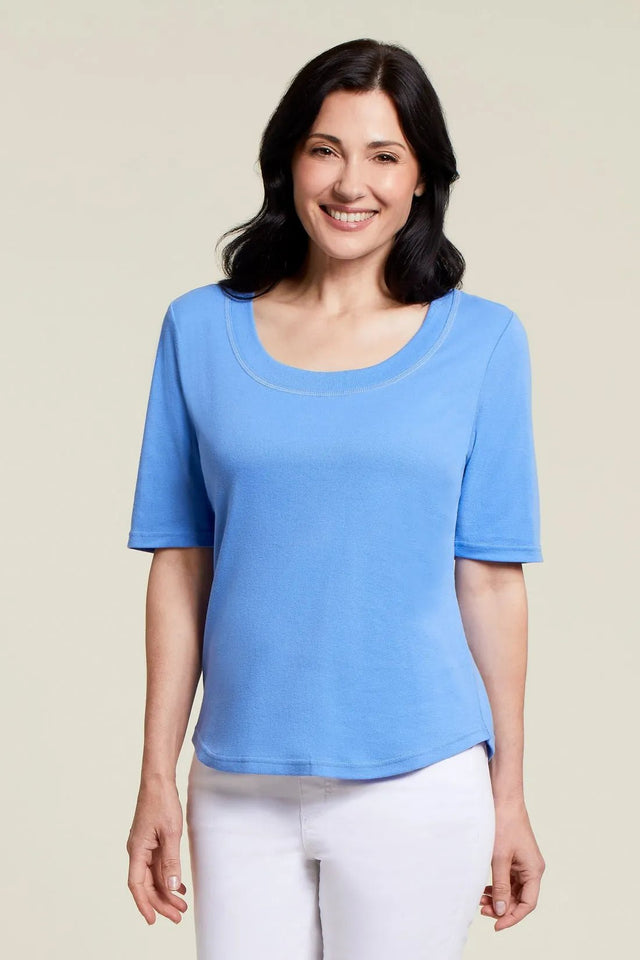 Tribal Women's Cotton Scoop Neck Top - Blue / M is backordered and will ship as soon as it is back in stock.