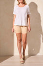 The easygoing silhouette of this short-sleeve top makes it an ideal choice for casual days. Shirred detailing along the back lends a flowy quality, enhancing its flattering shape. Made from soft slub jersey fabric, it promises all-day comfort, while side slits allow for breathability and effortless movement.