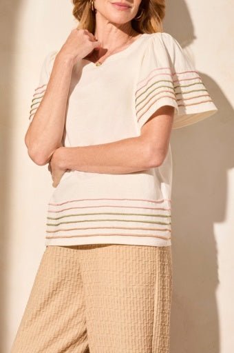 This boat neck top is a standout addition to your wardrobe, adorned with delightful details that set it apart. Standout features include vibrant overlock top stitching with playful short flutter sleeves, adding a touch of whimsy to your ensemble. Embrace the loose, comfortable fit and the breathability of the pure cotton fabric, ensuring comfort regardless of the temperature.
