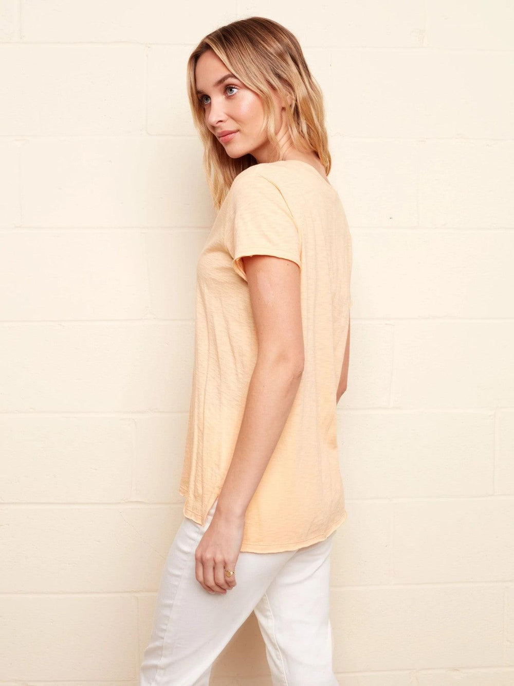 Keep it stylishly simple this season with this short-sleeved T-shirt featuring a trendy front seam detail. The solid colour makes it a perfect choice for mixing and matching with your favourite spring and summer bottoms.