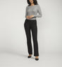- Baby bootcut jeans with black ponte fabric, 2 front pockets, 2 back welt pockets, and belt loops